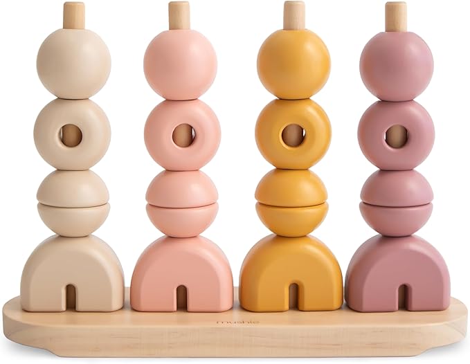 mushie Wooden Multi Shape Stacker | for Kids 3 Years+ | Preschool Educational & Toddler Montessori Toys (Sunrise)