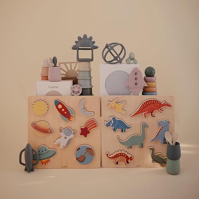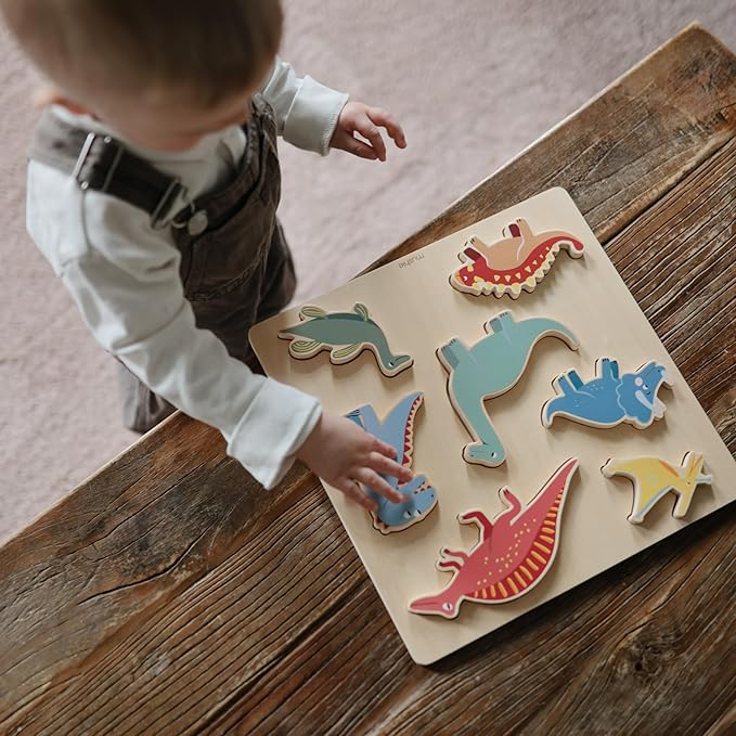 mushie Wooden Dino Puzzle | for Kids 3 Years+ | Preschool Educational & Toddler Montessori Toys (7 pcs)