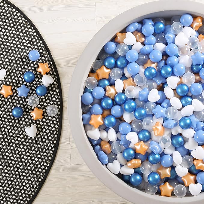 - Unleash Creativity: Foster imagination and cognitive development with our enchanting ball pits balls. With their eye-catching colors and star-hearts shaped design, kids can engage in color recognition, counting, and imaginative play, opening the door to endless creative possibilities. Make playtime truly magical!