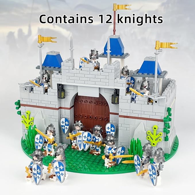 Usoway Medieval Knight Castle Building Blocks Set,Comes with 12 Knights Figures,Compatible with Lego Medieval Town Square Toys,for Adult and Children Ages 6+, 607016