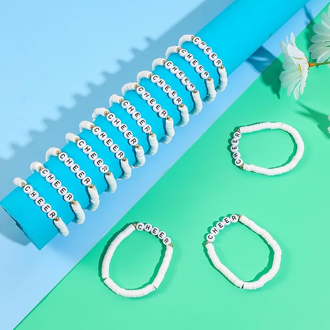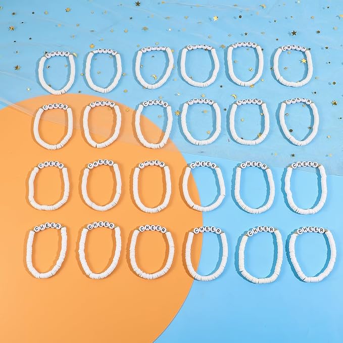 24 Pcs Cheerleader Gifts for Girls Handmade Friendship Bracelets for Teen Girls Stretch Cheer Bracelets Y2k Cheer Stuff Stackable Clay Bead Bracelets Bulk Teens Birthday Christmas Party Favors
