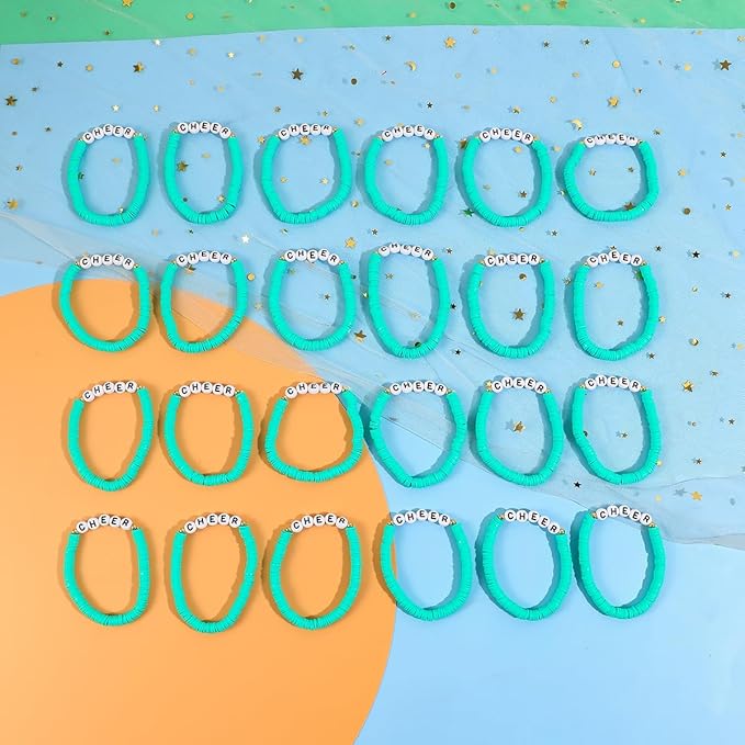 24 Pcs Cheerleader Gifts for Girls Handmade Friendship Bracelets for Teen Girls Stretch Cheer Bracelets Y2k Cheer Stuff Stackable Clay Bead Bracelets Bulk Teens Birthday Christmas Party Favors