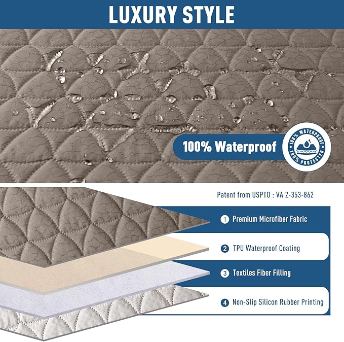 - 【Unique High-Tech Craftsmanship】TAOCOCO recliner sofa covers 3 seater showcases a distinctive high-tech pattern that seamlessly blends elegance and modernity, adding a touch of luxury to your recliner. Microfiber, Water Resistant Fabric(Had obtained patent from USPTO);VA 2-353-874