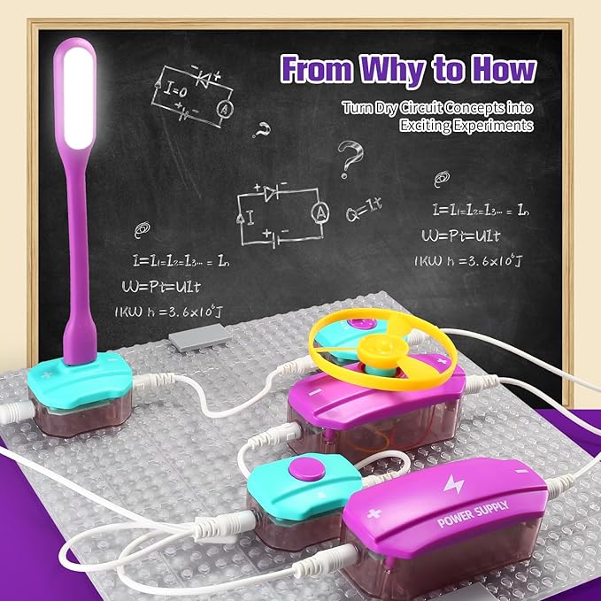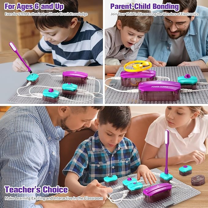 - WHAT'S IT?——This circuits for kids to learn circuits and electronics, ranging from simple to complex devices. Through hands-on exploration, they discover answers to questions like how light bulbs work, how speakers produce sound, and how fans rotate, deepening their understanding of electric circuit kits for kids and fostering creativity.
