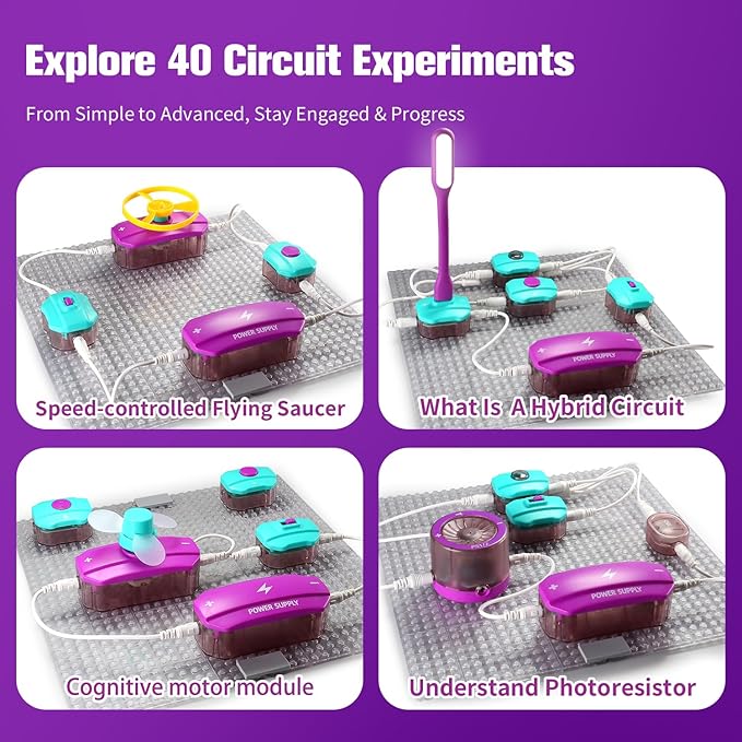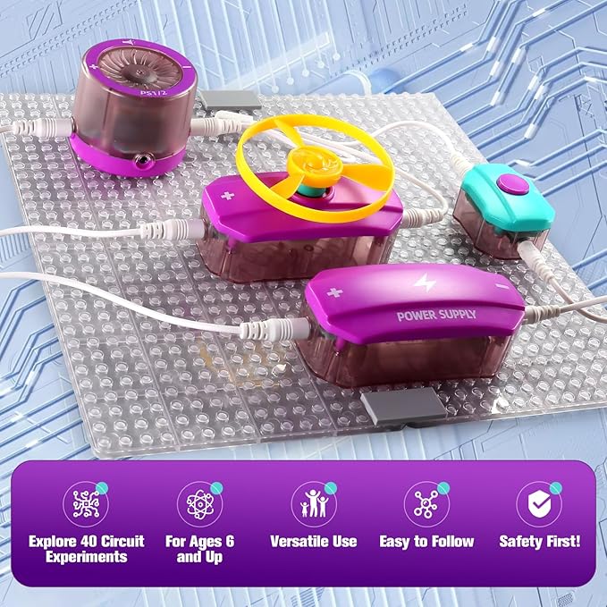 - IS IT SAFE AND EASY TO USE?——Designed with safety in mind, featuring rounded corners, insulated packaging, and user-friendly interfaces, ensuring a confident exploration of circuit toys. The detailed instructions and 40 circuits for kids 8-12 construction schemes make it easy to use, even without specialized knowledge.