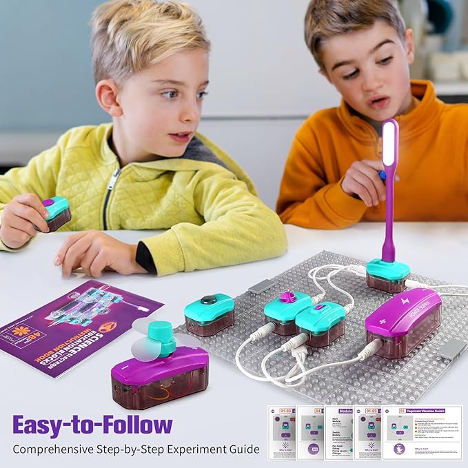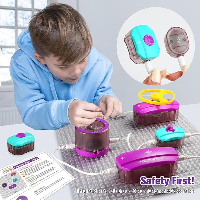 - WHY DO YOU NEED?——Empowers children to explore electronics safely with detailed instructions and safe design features. Besides learning about circuits and electronics, it fosters independence, teamwork, and problem-solving, critical thinking, and creativity, enhances understanding of scientific concepts. Provides years of entertainment, and is an outstanding kids circuit board building kit tool for learning and fun.