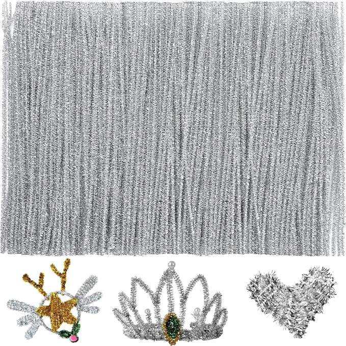 200pcs Pipe Cleaners, Pipe Cleaners for crafts, Craft Supplies Chenille Stems for Art&Craft Christmas DIY projects(12inch*6mm,Silver Glitter)