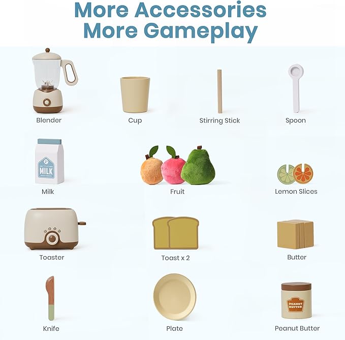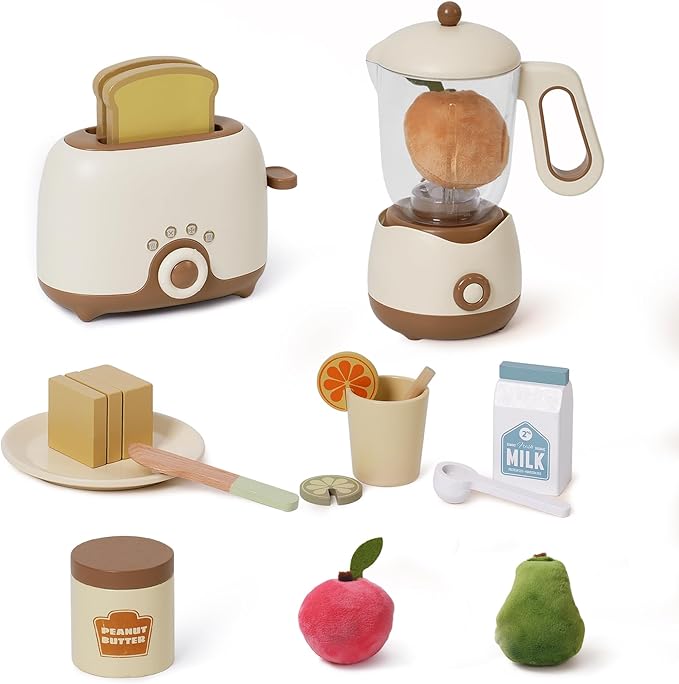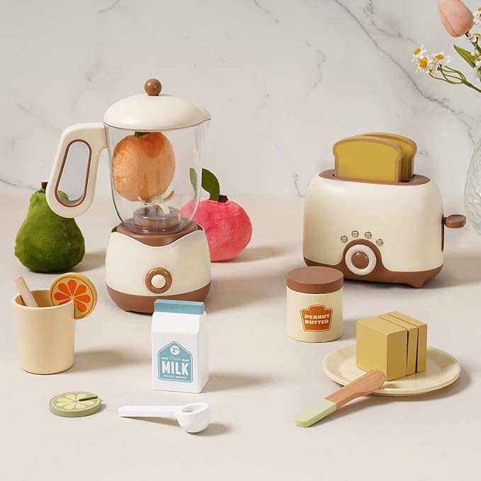 - Realistic Pretend Play: Let your child's imagination run wild with our ROBOTIME Kids Toy Kitchen Set! This set includes a toaster and blender that look just like the real thing, providing hours of engaging and educational playtime.
