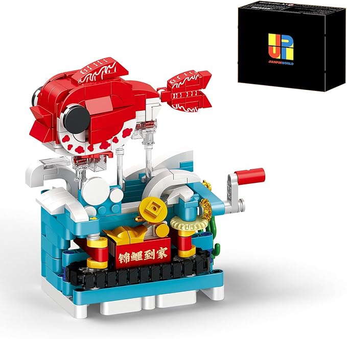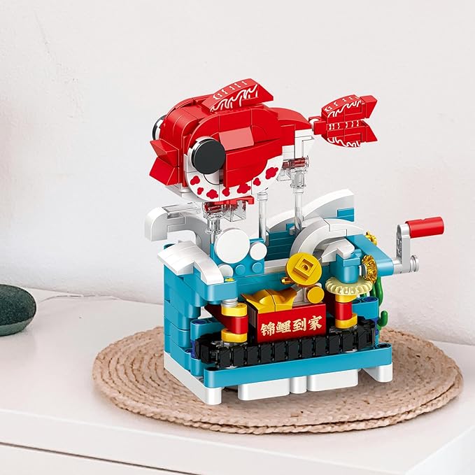 Chinese Jinli Fish Small Building Blocks Set Koi carp Collectible for Chinese New Year 340PCS Creative Toy Building Sets for Adults and Kids Age 6+ with Tail Wagging 96004