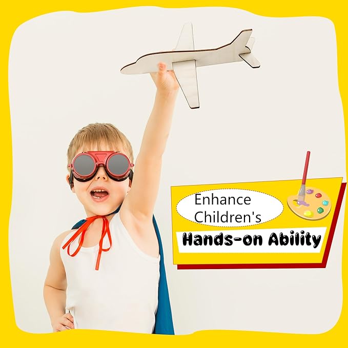 - 【What Will You Get】: This package include 24 pcs wooden model airplane, 2 pcs paint brushes, 1 pcs 6 pots of acrylic pain, are a good opportunity to exercise children's eye-hand coordination and bring their initiative into full play. Make Your Own 3D Airplane allow children to have more different experiences about this wooden airplane craft kits, and encorage their creative ability and improve the awareness of colors.