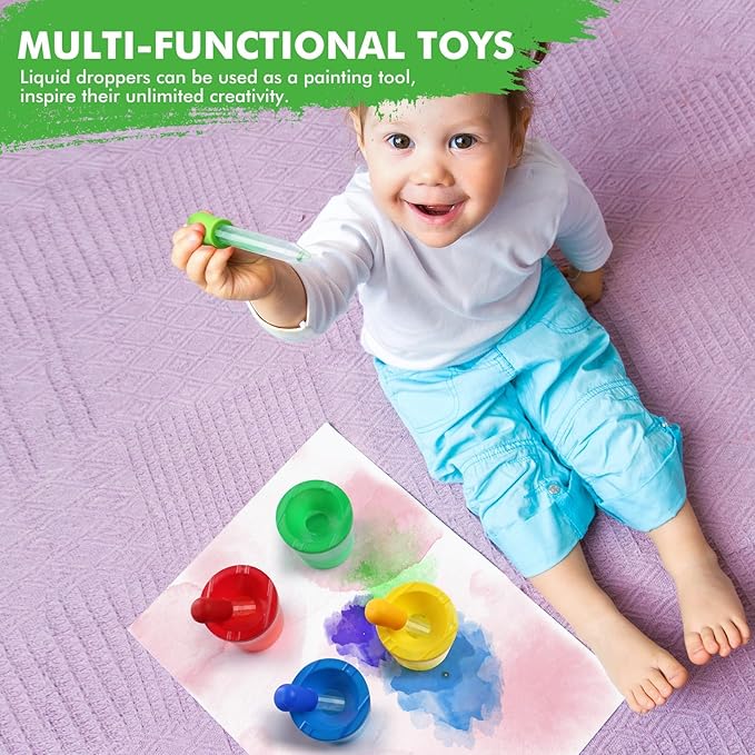 - Creative Gifts for Kids: Test tubes and droppers set is a great gift choice for Birthdays, Christmas, and other holidays for kids & toddlers over 3 years old. Open the door of science with kids' test tube and dropper set, lead kids to perceive the mystery of science between drops, experience the fun of experiments, and ignite the scientific dream in the heart