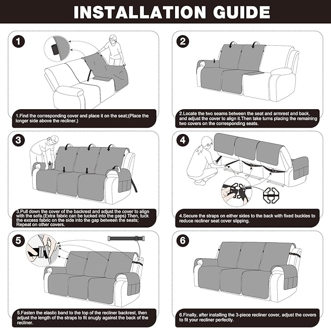 - 【STAY IN PLACE】Solid round colloid design on the back of our recliner cover to reduce slipping. Each recliner slipcover is equipped with elastic bands and non-slip buckles that strongly stabilize the seat and prevent the back of the recliner from falling off