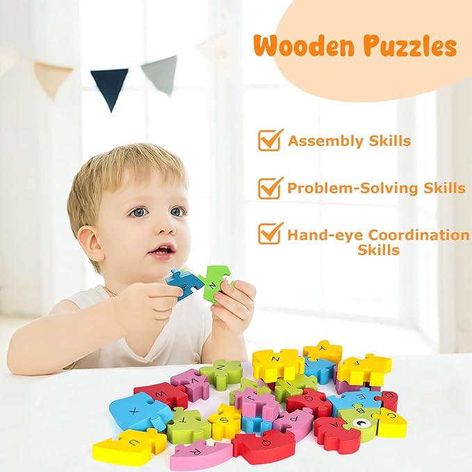 - Child-Safe Quality: Our wooden alphabet puzzles are made from high-quality, durable wood and meet US toy safety standards. Rigorously tested for safety, the learning puzzles for toddlers feature smooth, rounded edges and vibrant, long-lasting water-based paint. Parents can rest assured their children can play safely