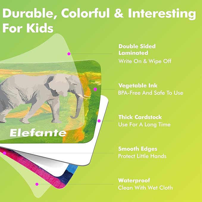 - Usage Innovation: Total 72 Spanish cards make it 36 pairs for kids to get familiar with these lovely animals and learn Spanish animal words. You could also use the customizable side set up your own puzzles.