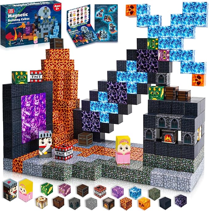 - 【Dark Castle Sword Domain Magnetic Cube Kit】Including 150 Magnetic cubes in 18 colors. Idea booklet with the storyline and beautiful patterns, keep them busy in clever ways. GraceDuck magnetic activity cubes are made of high-quality ABS material and crafted with round edges and the right size. Unlike other Magnetic toys on the market, our magnetic cubes kit with super strong internal Magnetic, which is easier for toddlers ages 3+ to stick the cubes together and make builds sturdy. Perfect STEM toys help kids gain a deeper understanding of the structure and learn about magnetic properties!