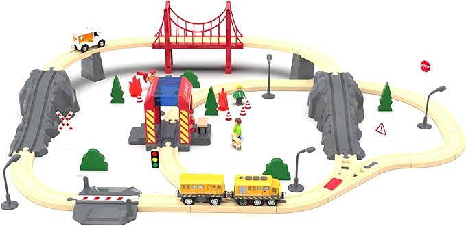- The traction train set is a battery powered train that working with all major brand wooden train track system, 100% fits Thomas & friends, Brio, Chuggington, Melissa and Doug, Kidkraft and more.