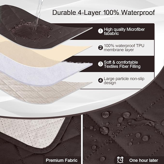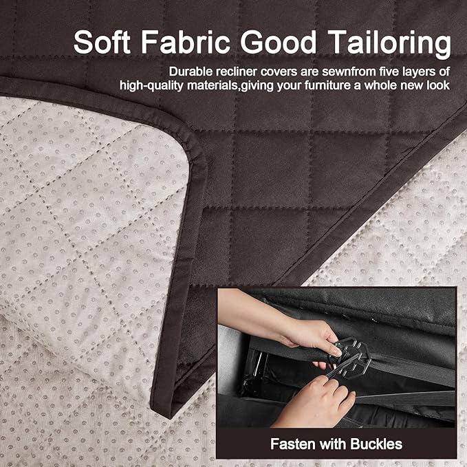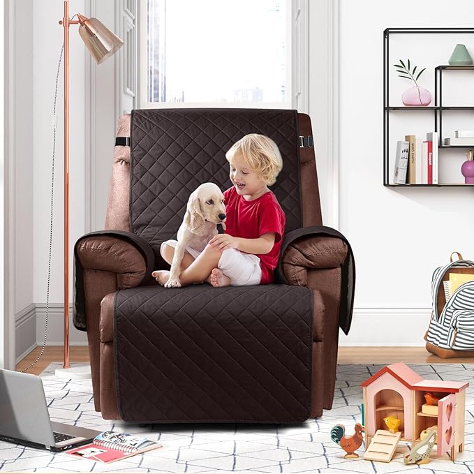 KinCam 100% Waterproof Recliner Chair Cover, Reclining Couch Covers for Pets, Dogs, Recliner Couch Slipcover Furniture Protector with Elastic Straps for Kids(30", Chocolate)