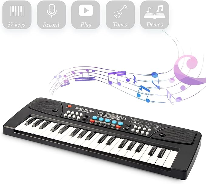 LeeQee Black 37 Keys Kids Piano Keyboard, Portable Electric Musical Instruments Piano with Microphone, Learning Educational Gifts Toys for Age 3 4 5 6 7 8 9 Years Old Boys Girls Toddlers