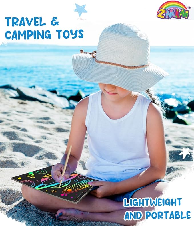 - 2.Versatile Fun for Every Scenario: Rainy days, travel adventures, or holiday crafting sessions—our rainbow scratch paper is the ultimate companion for imaginative play. It's perfect for arts and crafts projects, creative gifts, or keeping kids entertained during holiday gatherings.