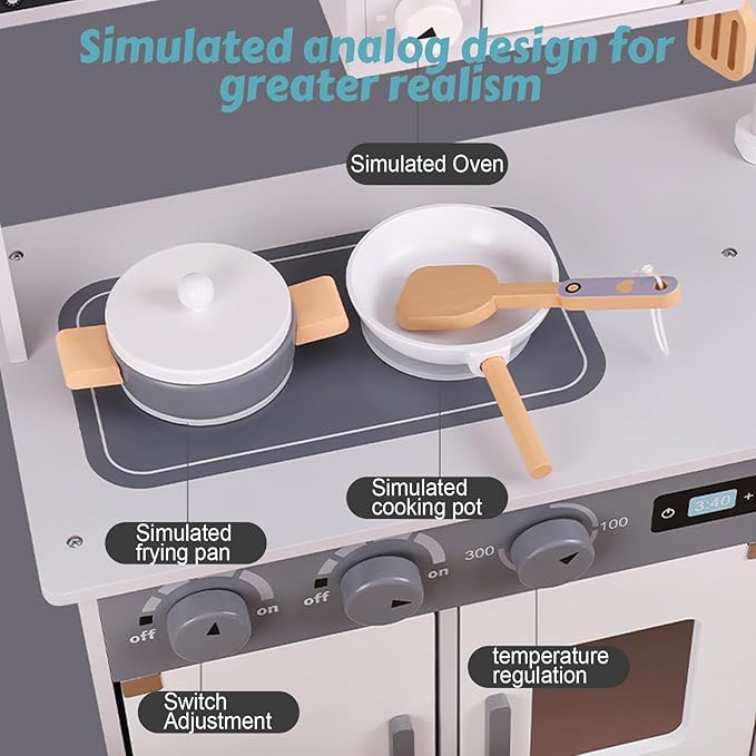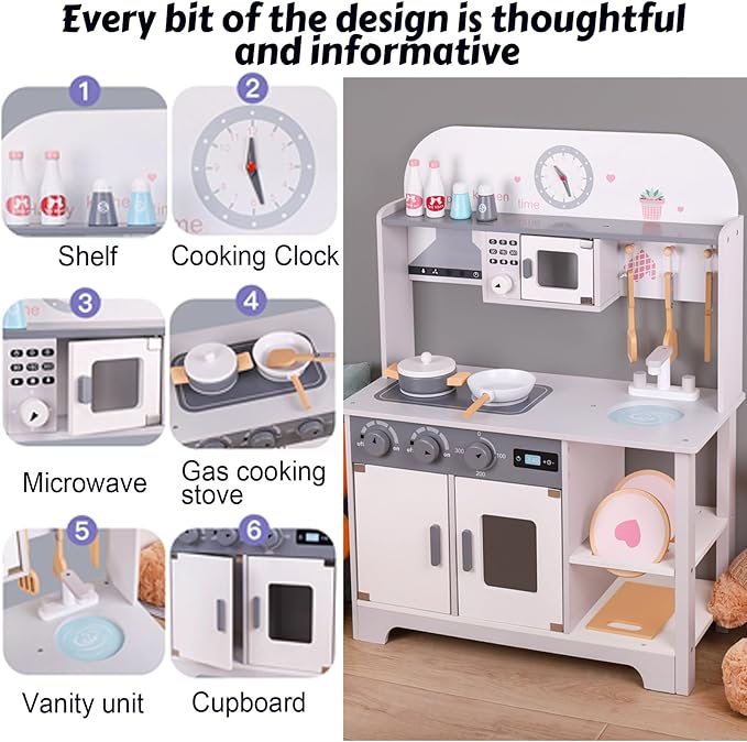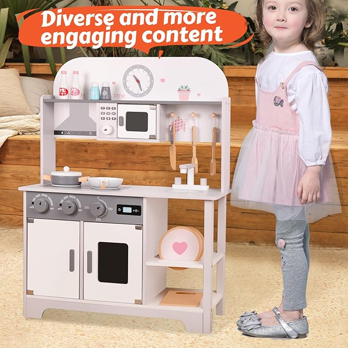 - MULTIFUNCTIONAL KITCHEN: Our feature-rich kitchen toys offer endless possibilities for toddlers ages 3 and up. From cabinets to stoves, faucets to sinks, microwaves to rotatable buttons - every corner is filled with interactive fun. Unleash creativity and imagination in this play space designed for exploration.