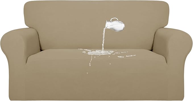 PureFit 100% Dual Waterproof Couch Cover Slipcovers for Couches and Sofas - Stretch Non Slip Fleece Sofa Covers Washable, Leakproof Furniture Protector for Kids, Pets, Dog (Loveseat, Natural)