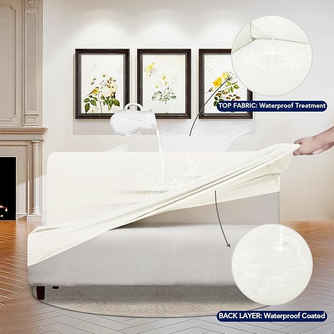 PureFit 100% Dual Waterproof Futon Cover, Waterproof Couch Cover for Futon - Stretch Non Slip Fleece Sofa Covers Washable, Leakproof Furniture Protector for Kids, Pets, Dog (Futon, Beige)