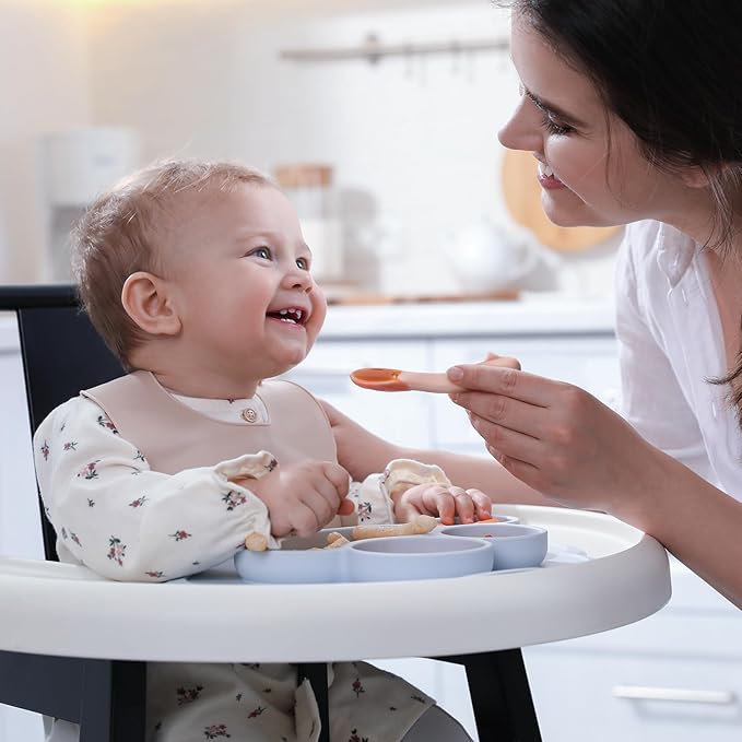 - 100% Baby-Safe Food-Grade Silicone: Crafted from 100% premium food-grade silicone, our baby self-feeding spoons are entirely safe, free from BPA, PVC, phthalates, and any toxic substances.Even when chewed, they pose no risk to children. Their baby-friendly design and heat-resistant silicone material, superior to metal or plastic, make them a popular choice for little ones.