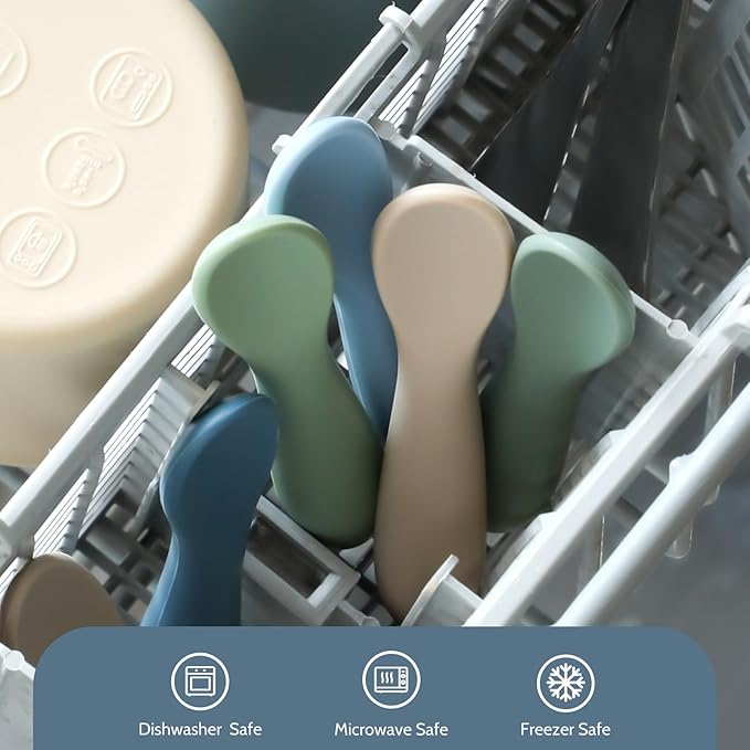 6 Pack Baby Spoons, First Stage Spoons, Shorter Length for Self Feeding, 6+ Months, Baby Training Spoons Infant Spoons, Food Grade Silicone, Dishwasher Safe & Boil-proof
