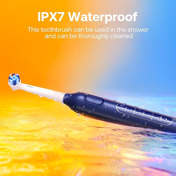 - 2-Minute Smart Timer & IPX7 Waterproof: With a built-in timer that pulses every 30s, this electric toothbrush ensures thorough cleaning by guiding your brushing routine across all mouth quadrants; It's waterproof design allows for easy use in the bathroom