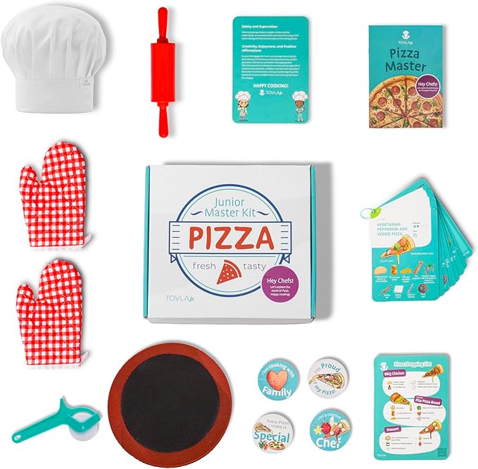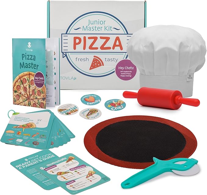 Tovla Jr. Ultimate Real Pizza Cooking Kit for Kids – Fun DIY Baking Set, STEM Activity for Ages 4+, Visual Learning Pizza Tools, Great Gift for Young Chefs