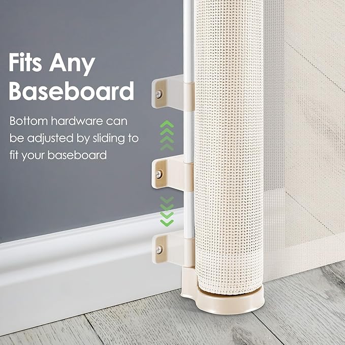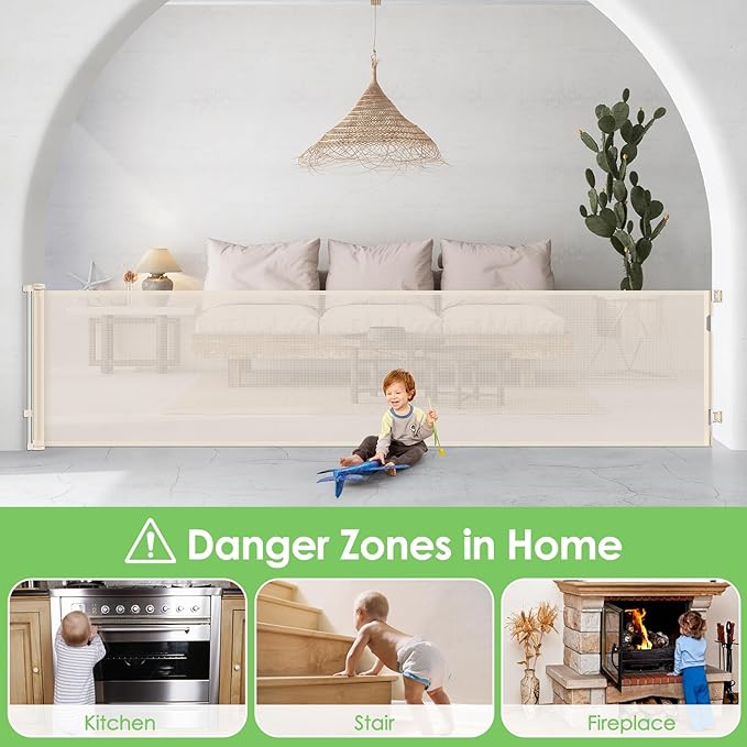 - MULTI-FUNCTIONAL: Kids and dogs are curious about everything in the house, like stairs, kitchen, living room, hallways, doorways, garage, indoor and outdoor, etc. So you need a retractable baby gate or retractable dog gate to block off dangerous areas or divide your home.