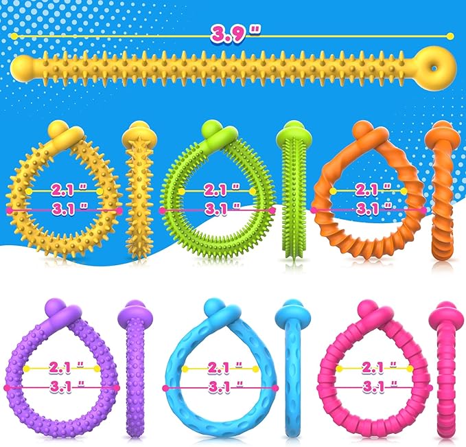 - SENSORY TACTILE STRETCHY TOYS: 6 pack fidget sensory strings for kids are designed with custom-formulated textures. Perfect stress toy for toddlers, kids, teens, and adults. The stretchy fidget pack can provide unique tactile experience and sensory input for autistic children