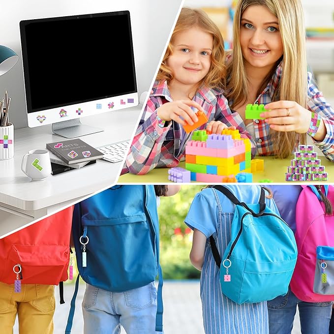 98 Pcs Train Party Favors,Train Print Party Supplies Include Stickers Stamps Keychains Slap Bracelets and Drawstring Bags Party Decorations for Kids TrainTheme Birthday supplies (E-Building Blocks)
