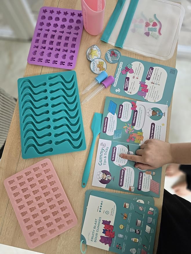 - Encourages Creativity & Independence: Kids can customize their gummies with different shapes and flavors. The included affirmation stickers celebrate their candy-making achievements, while the educational booklet offers gummy history, fun facts, and tips to boost creativity.