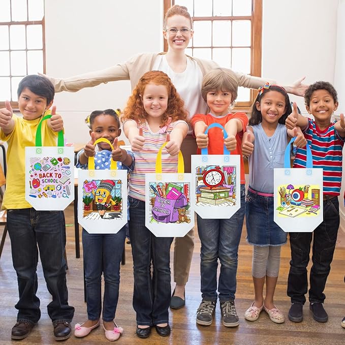 - DIY Coloring Bag: the coloring goodie bags are printed with back to school bus, etc., simple and cute; The bold lines guide coloring and allow children to color with crayons and colored pencils (not included), also nice for training their color matching ability