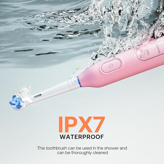 - 2-Minute Smart Timer & IPX7 Waterproof: With a built-in timer that pulses every 30s, this electric toothbrush ensures thorough cleaning by guiding your brushing routine across all mouth quadrants; It's waterproof design allows for easy use in the bathroom