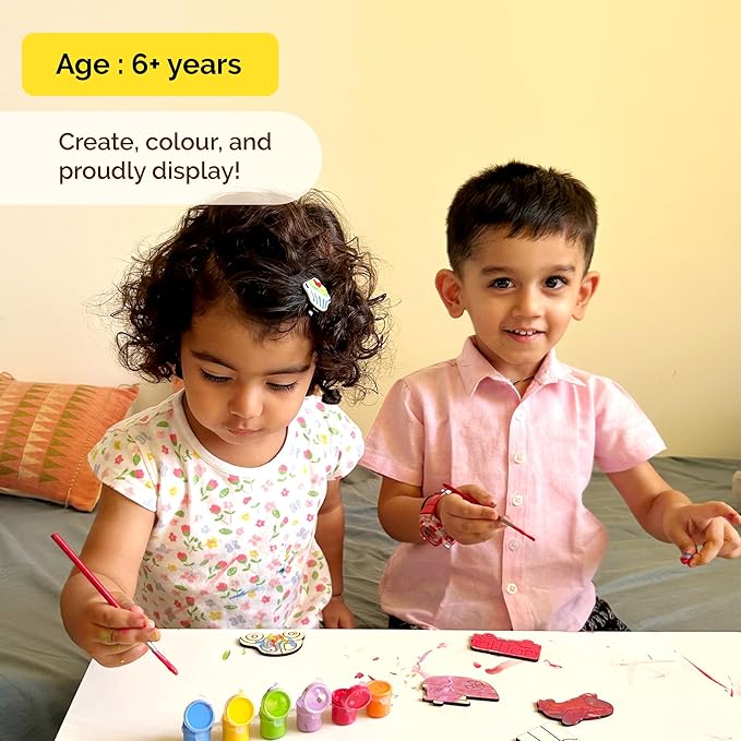 - ARTS & CRAFTS KIT: This wooden painting crafts kit is designed to inspire creativity and provide hours of fun for boys and girls, suitable as arts and crafts for kids ages 4-8 8-12. Make their own unique wooden magnets to decorate your refrigerator, iron windows and more. SKILL SET: Fine motor skills, Confidence, Creative expression and Communication.