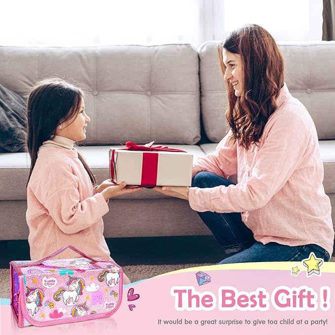 KIDDYCOLOR Unicorn Washable Markers Set 69 pcs with Glitter Pencil Case - Arts and Crafts Coloring Kit for Kids Ages 4-8, Includes Unicorn Stickers - Perfect Gifts for Girls