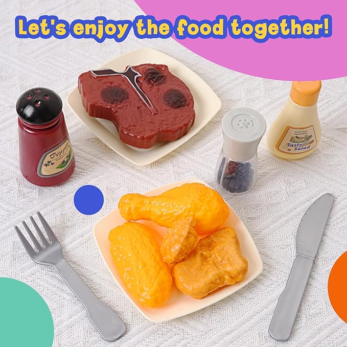 - Exquisite and Realistic Design: Every play kitchen accessory is meticulously crafted to look like the real thing, from fries and pasta to steak. These detailed designs inspire imagination and creativity, allowing kids to explore exciting and imaginative role-playing adventures