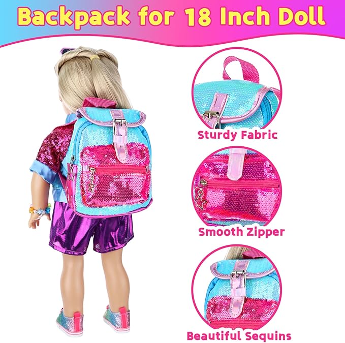 - Cute 18 Inch Doll Accessories: Realistic and interesting 18 inch girl doll accessories set will bring a lot of fun and happiness to our little girls.The cute 18 inch girl doll backpack is so compact and portable. It can help kids store some 18 inch doll clothes and accessories.