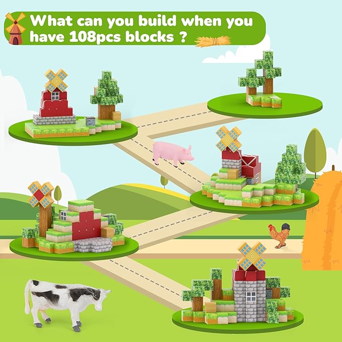 - CITY THEME: Step into the magical world of city road with our Magnetic Blocks set! This 110-piece set features vibrant magnetic blocks with 6 adorable cars, sparking endless creativity and fun for kids.