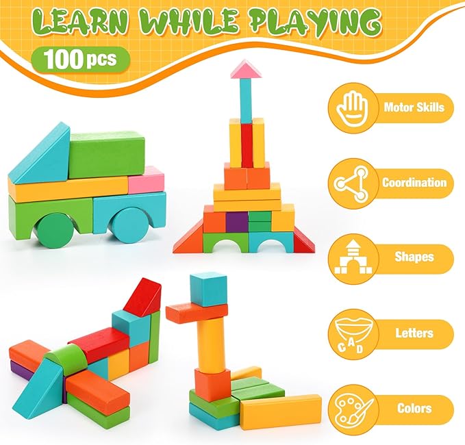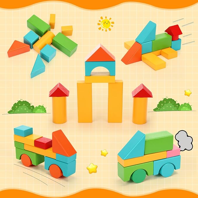 - Reliable and Safe Materials: each piece is carefully crafted to ensure there are no rough edges, ensuring safe play; Wood building blocks are suitable for any occasion and play area home, classroom, school, daycare, parties and birthday gifts