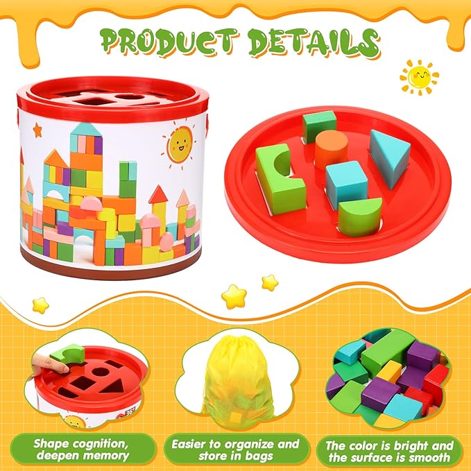 - Convenient Storage: our set includes a portable container for easy storage, and with holes in the lid for various shapes, parents don't have to worry about cluttering up the room while you are challenged to recycle their blocks and learn