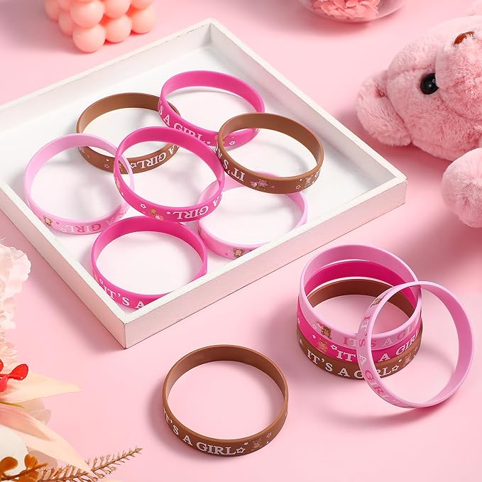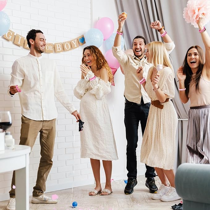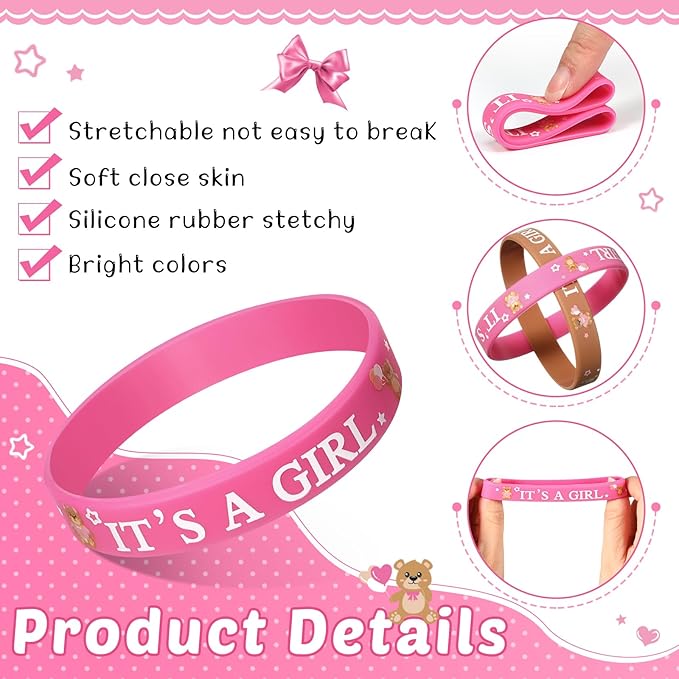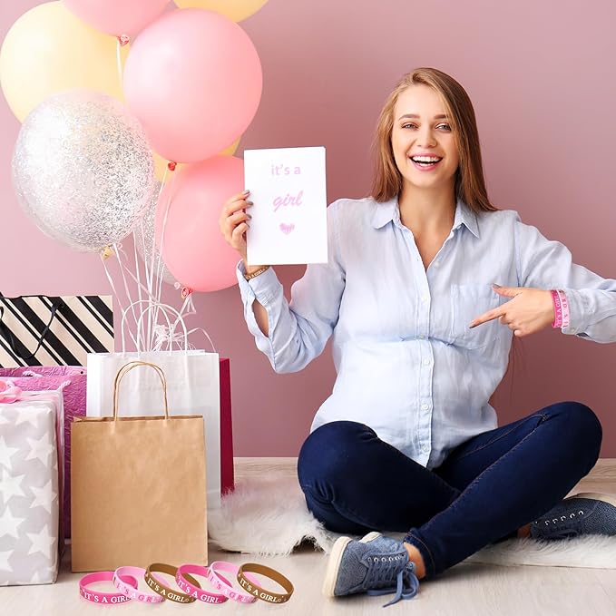 - Wide Application: it is ideal for everyone who joins the baby shower party, gender reveal party, and suitable to be applied as good gifts for your families, friends and colleagues; The baby shower rubber wristband bracelets can be matched with other baby birthday party like balloon boxes, which could create a joyful atmosphere and make your gender reveal party full of laughter