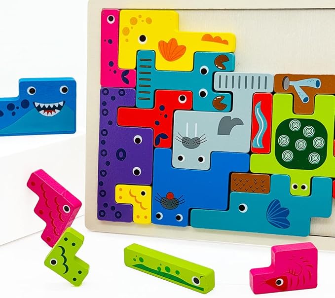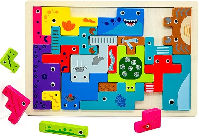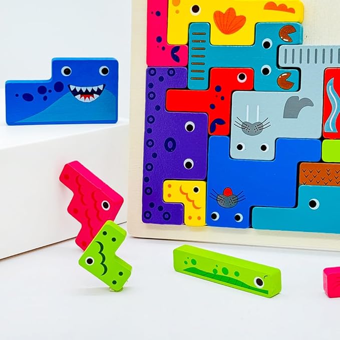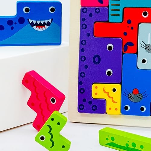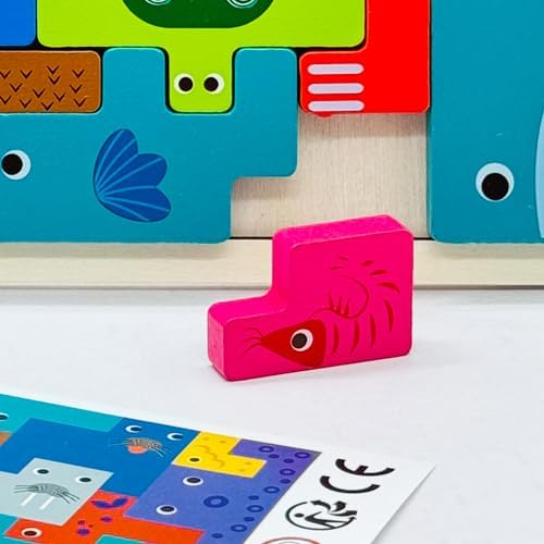 Wooden Blocks Puzzle Russian Blocks for Kids Age 3 4 5 Years Old, Children's Puzzle Game Board Learning Education Montessori Toddler Puzzle Wooden Toys for Kids Birthday Party Gift (Ocean)