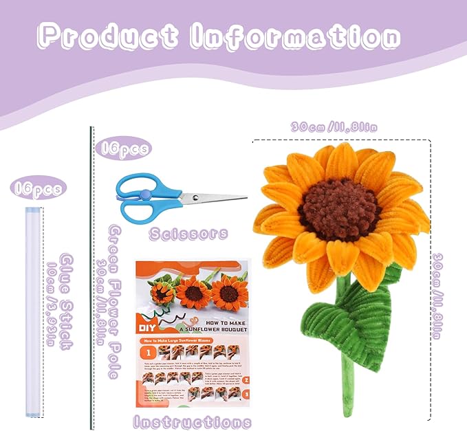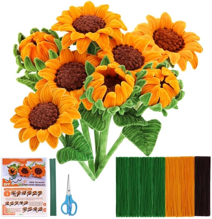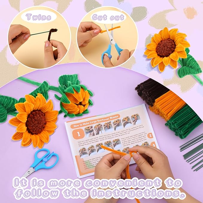 - Creative DIY Kit for Beginners: Making craft sunflowers is very friendly to beginners and easy to make. The pipe cleaner sunflower kit comes with step-by-step instructions, and even beginners can follow the instructions to complete this craft project. Making a craft bouquet is a fun and fulfilling project, and you can also enjoy a pleasant craft time with your family and friends!