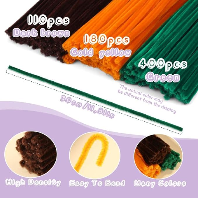 - Premium Pipe Cleaners: craft pipe cleaners are made of wire and fiber, and are easy to bend, twist, or twist into most shapes. Pipe cleaners are brightly colored, soft to the touch, not easy to break, and perfect for making petals, stems, and leaves to create a vivid and realistic sunflower pipe cleaner kit.