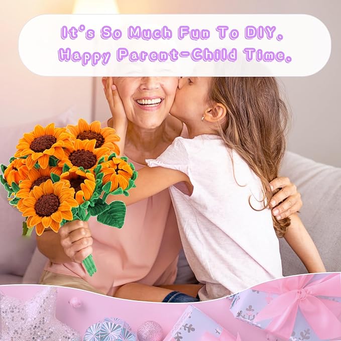 - Great Creative Surprise: This chenille flower stem set is perfect for friends who like handmade crafts. The beautiful sunflowers are also suitable for Christmas, Thanksgiving, and Mother's Day, as a surprise to mom and grandmother. Give handmade crafts to your family and convey love with your heart.