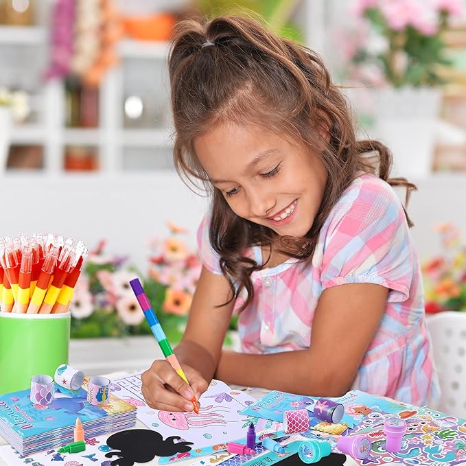 - Reliable Material:our mermaid theme party favors set are mainly quality paper, plastic, paraffin, nontoxic, safe material, sturdy to use. You can give these nice items as mermaid party goodie bag or classroom gift exchang for classmates or kids, stimulating creativity and concentration.