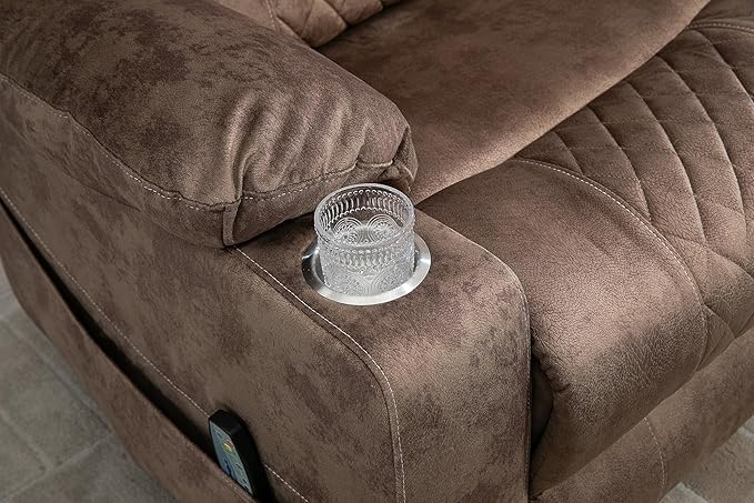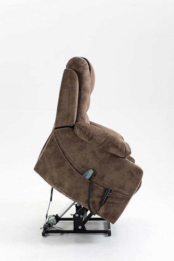 FANYE Electric Power Lift Chair for Elderly W/Massage and Heat, Infinite Positions 2 Remote Controllers Oversized Velvet Upholstered Recliner & Armchair W/Side Pockets & Cup Holders, Brown V